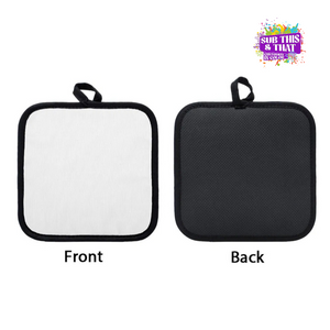 Add a touch of personality to the kitchen with our Sublimation White Pot Holder with Black Trim! Perfect for custom gifts or kitchen decor, this 7.8" x 7.8" pot holder features a white polyester front for vibrant sublimation, a black rubber heat-resistant backing, and a stylish black trim for a polished finish. Functional, durable, and totally customizable!